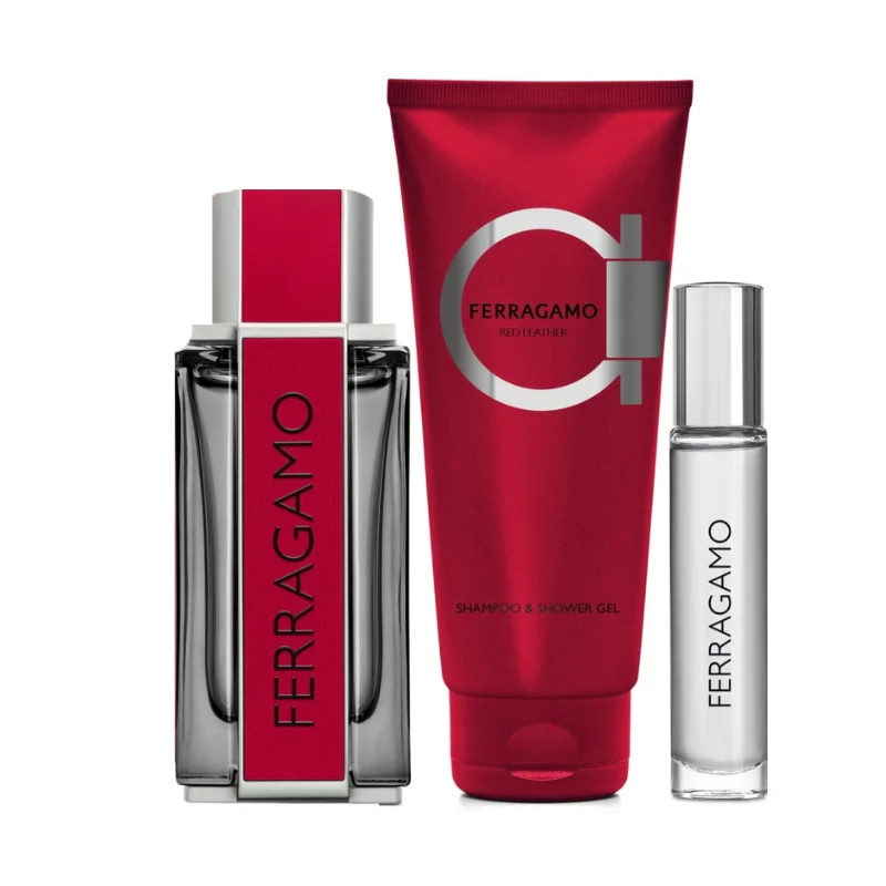 Salvatore Ferragamo Ferragamo Red Leather 3 Piece Gift Set for Men